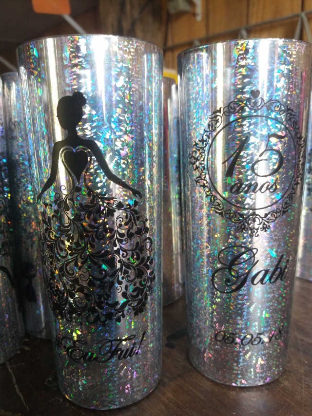 LONG DRINK METALIZADO PRATA ESTRELA | PERSONALIZADO FRENTE E VERSO